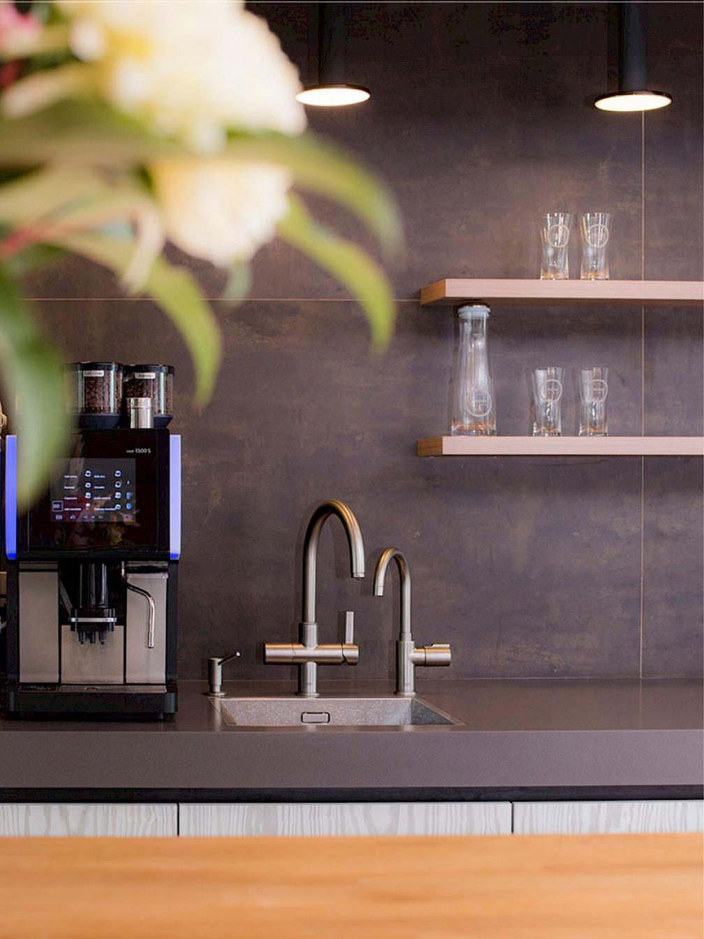 Gefiltertes, gekühltes und sprudelndes Trinkwasser steht allen Mitarbeitern zur Verfügung, um den Verbrauch von Plastikflaschen zu reduzieren. Im Büro des Projektentwicklers OVG Real Estate im 13. Stockwerk kommt das Wasser zudem aus GROHE Blue und Red Armaturen, die speziell für das stilvolle Trinken von Wasser entwickelt wurden. Die Kunden werden in der Küche und nicht am Empfang begrüßt und können ihren Durst selbst löschen. "Wir haben schon immer GROHE Produkte verwendet", sagt Ron Bakker, "sie sind sehr hochwertig und sehen gut aus. Aber diese Wassersysteme waren neu für mich. Ich würde gern eines zu Hause in meiner Küche haben". Die Verflechtung von Arbeit und Freizeit: In Amsterdam kann man bereits einen Blick in die Zukunft werfen.