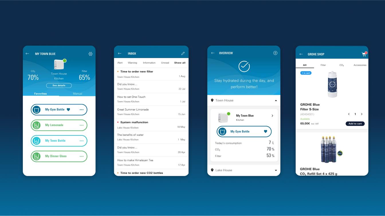 Steuern Sie Ihr GROHE Blue Home oder Blue Professional Wassersystem über Ihr Smartphone.